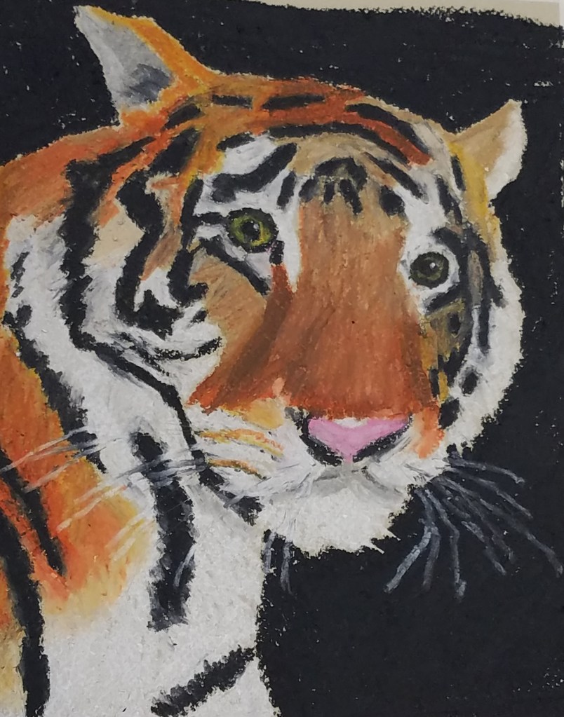 I was nervous using oil pastels as first, but they were surprisingly easy to use. It’s one of those mediums where it’s easy to be self-critical when you’re up close with your work creating individual lines, but taking a step back you can see the beauty of the whole.