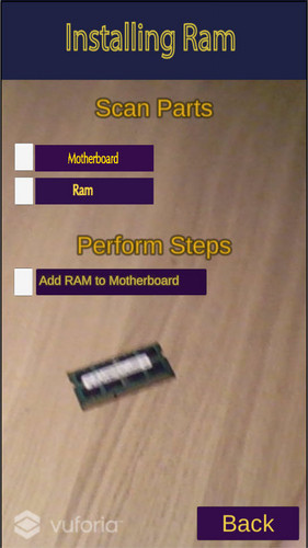 This augmented reality application was created with a team for a class at George Mason University in 2019. We put together an Augmented Reality application that helps guide users along the process of building a desktop application using visual object recognition in Vuforia. I worked on the programming integration as well as the visual object recognition system and object scanning.
