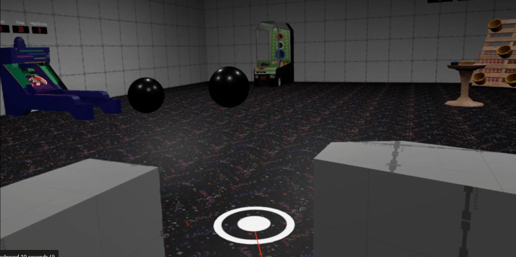 This SteamVR project was created with a team for a class at George Mason University in 2019. I worked on the VR programming of the game and integrating art, sound, and other code assets. In this game, you can play commonly found ball-related arcade machines in 6 degrees of freedom VR.